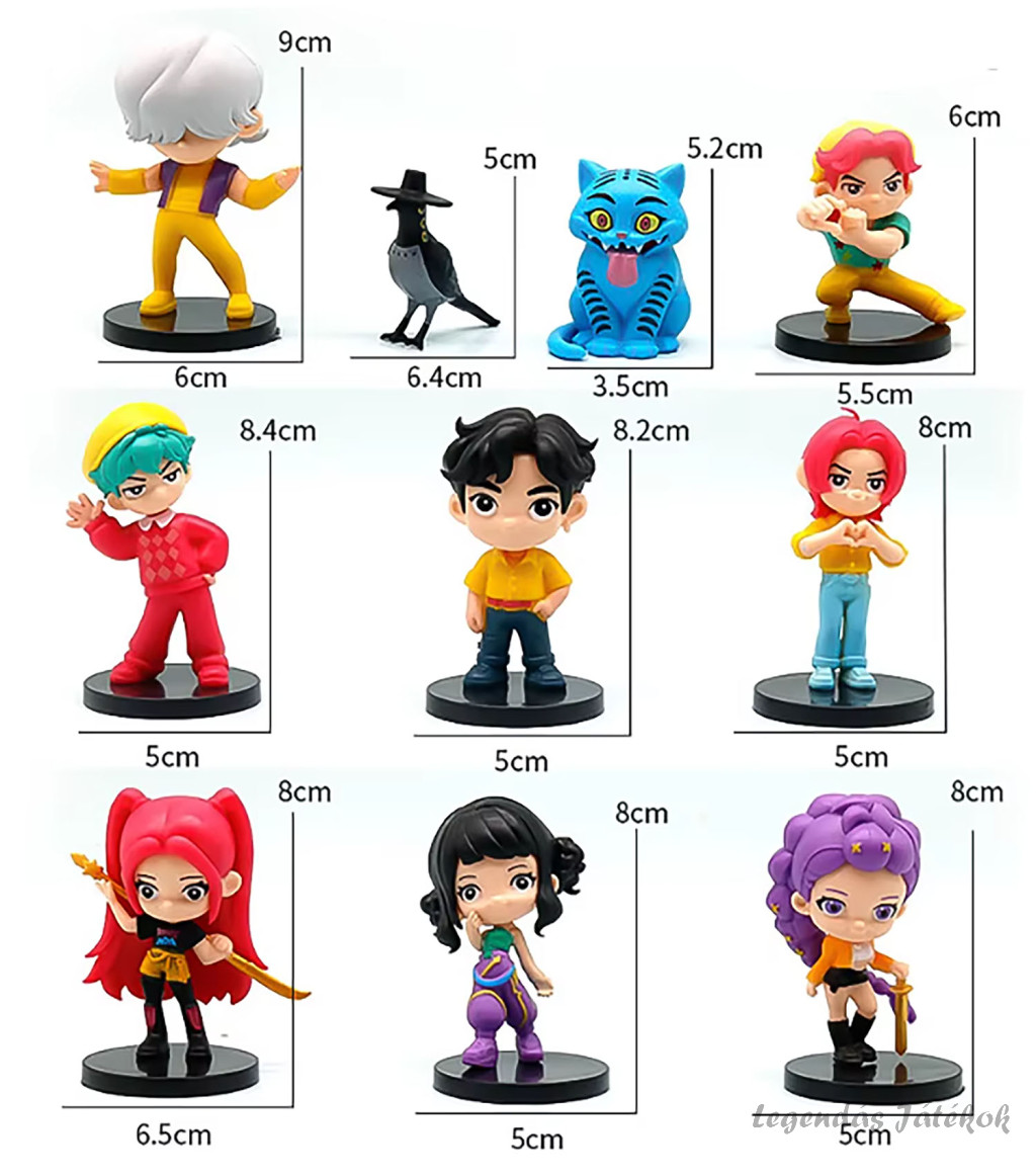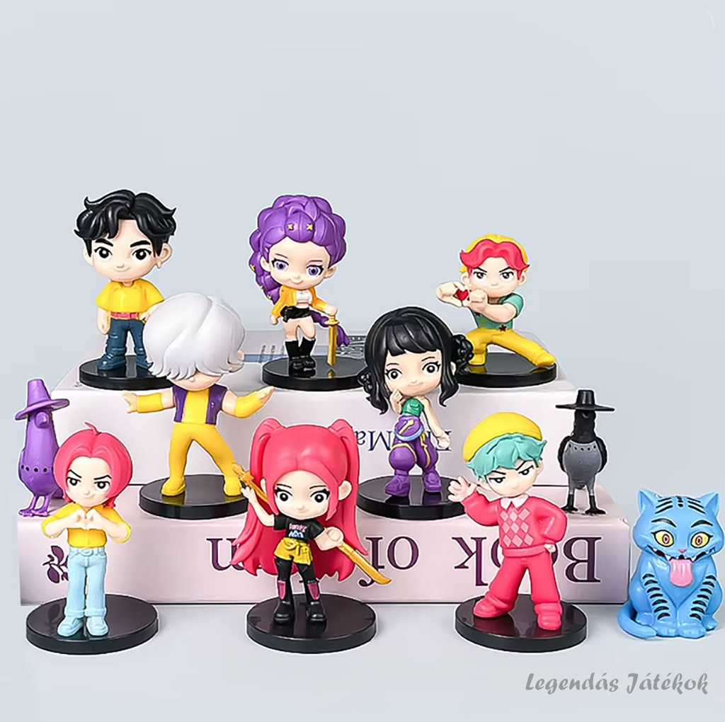 10 db-os K-Pop Demon Hunters jellegű figura szett. 5-9 cm-es figurák.