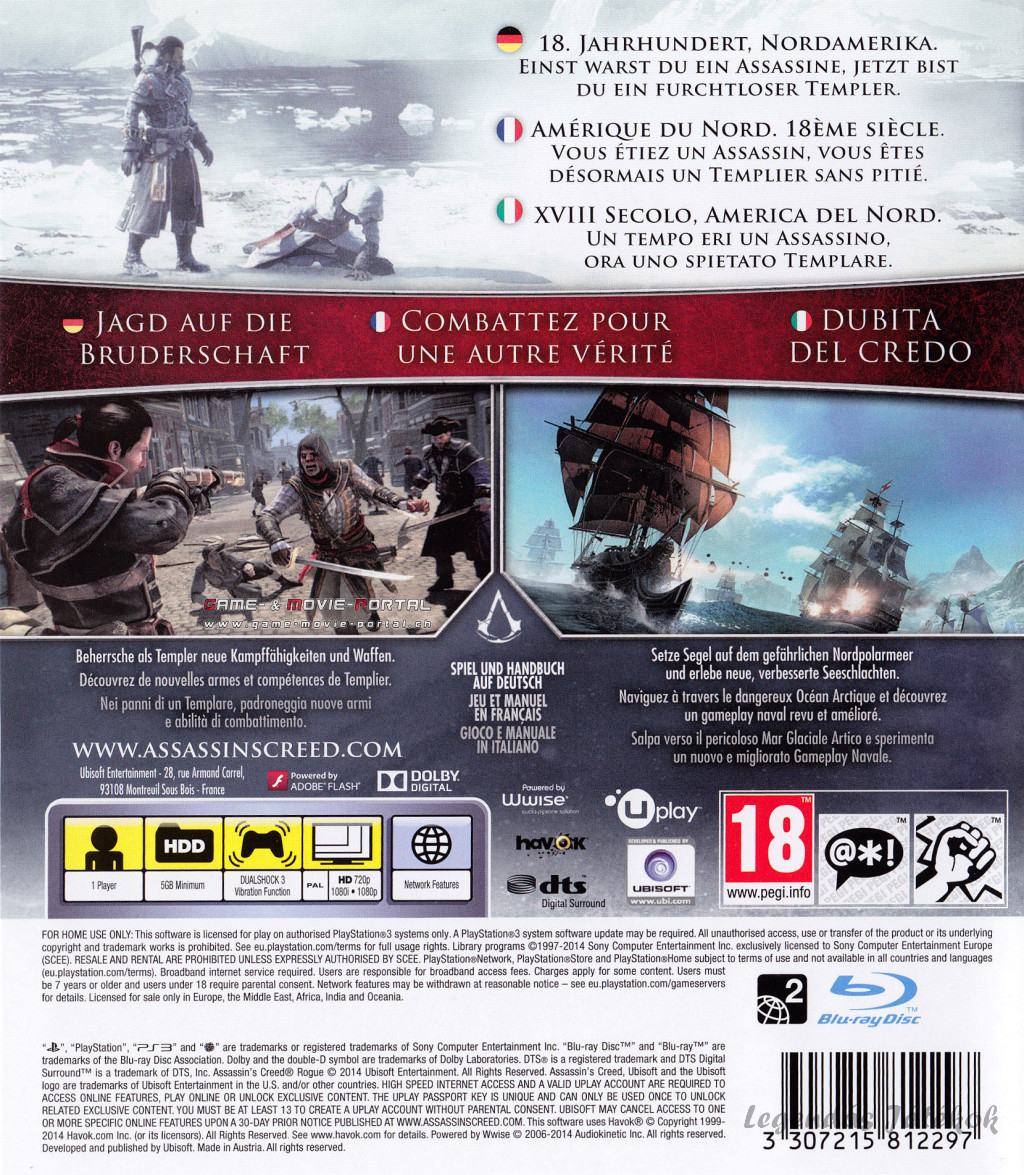 Az Assassin's Creed Rogue egy akció-kaland videojáték, amelyet a Ubisoft fejlesztett és adott ki. Az Assassin's Creed sorozat részeként 2014. november 11-én jelent meg PlayStation 3 és Xbox 360 konzolokra, majd később PC-re is.