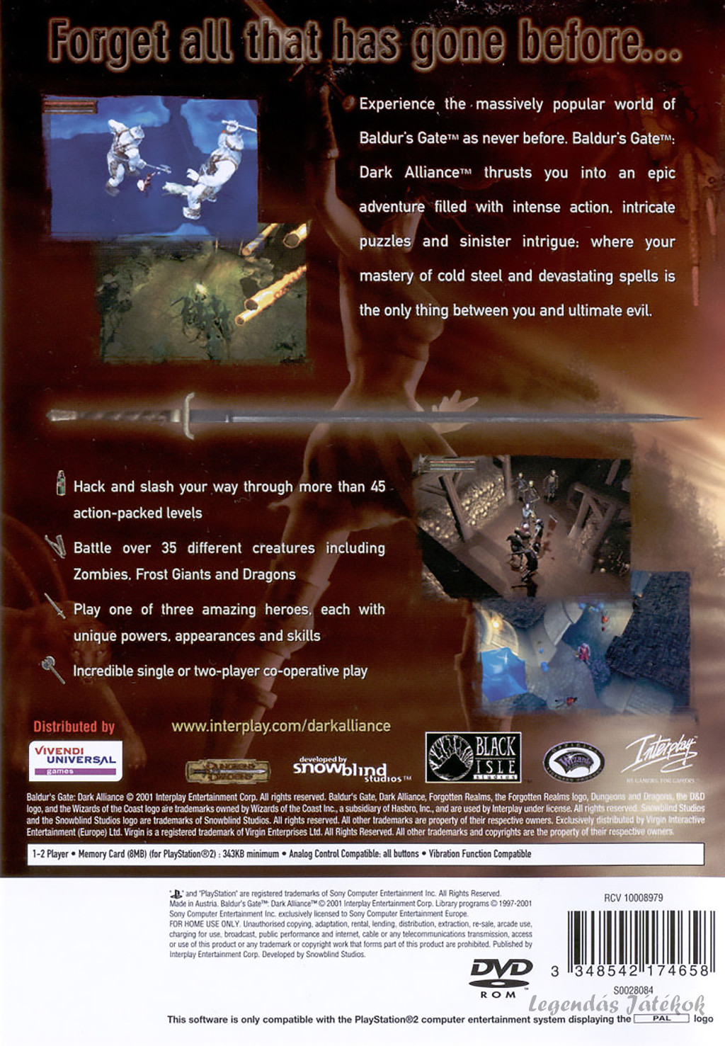 A Baldur's Gate: Dark Alliance egy 2001 -es akció-szerepjáték / hack and slash videojáték, amelyet a Snowblind Studios fejlesztett PlayStation 2 -re és Xbox konzolokra.