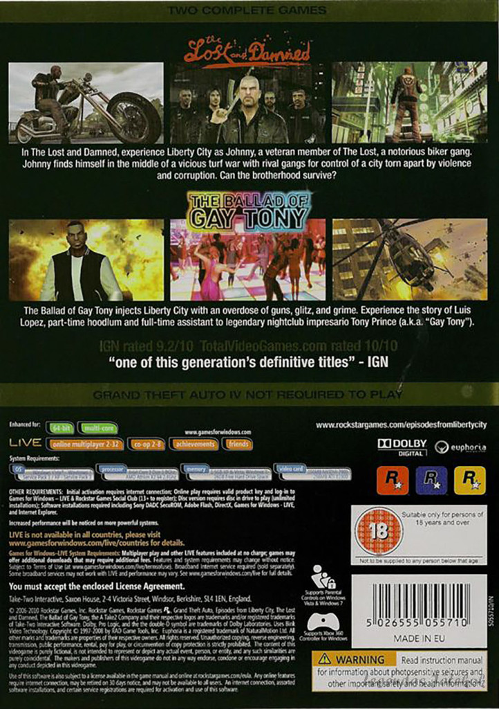 Önálló játék: Az "Episodes from Liberty City" egy önálló lemez, ami azt jelenti, hogy nem szükséges hozzá a "Grand Theft Auto IV" alapjáték ahhoz, hogy játszani lehessen vele.