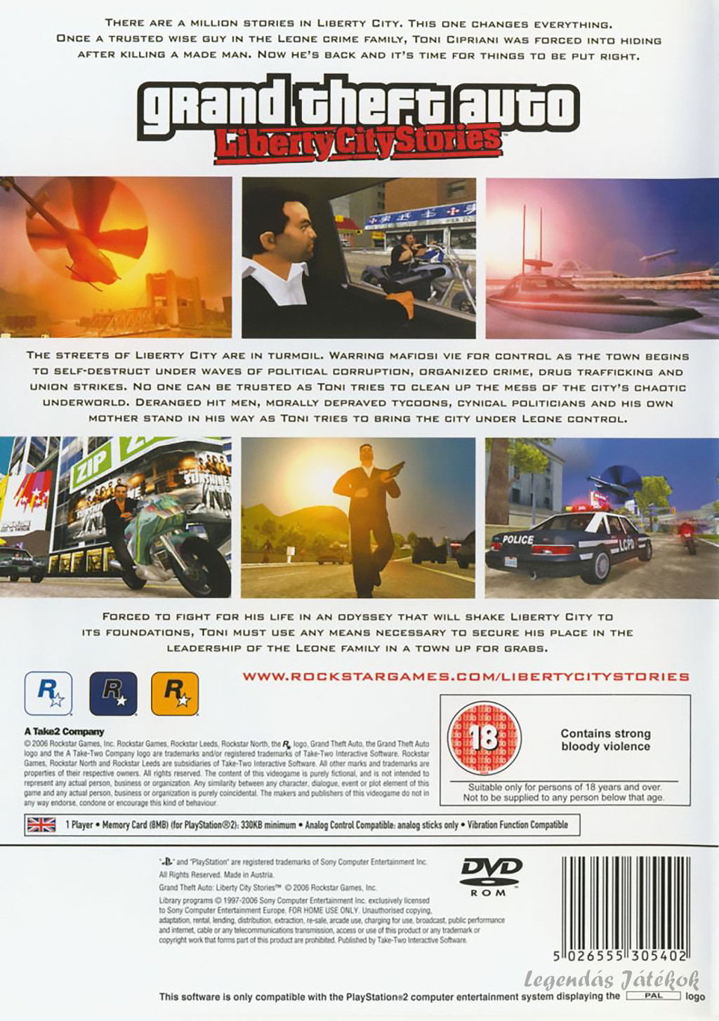 A Grand Theft Auto: Liberty City Stories egy akciódús, nyílt világú videojáték, amelyet a Rockstar Leeds és a Rockstar North fejlesztett, és a Rockstar Games adott ki, eredetileg 2005. október 24-én jelent meg PSP-re, majd 2006. június 6-án PlayStation 2-re is megérkezett. A játék a legendás GTA-univerzum szívébe kalauzol, visszatérve a jól ismert Liberty City-be, amely korábban a Grand Theft Auto III-ban is otthont adott a bűn és káosz színpadának.