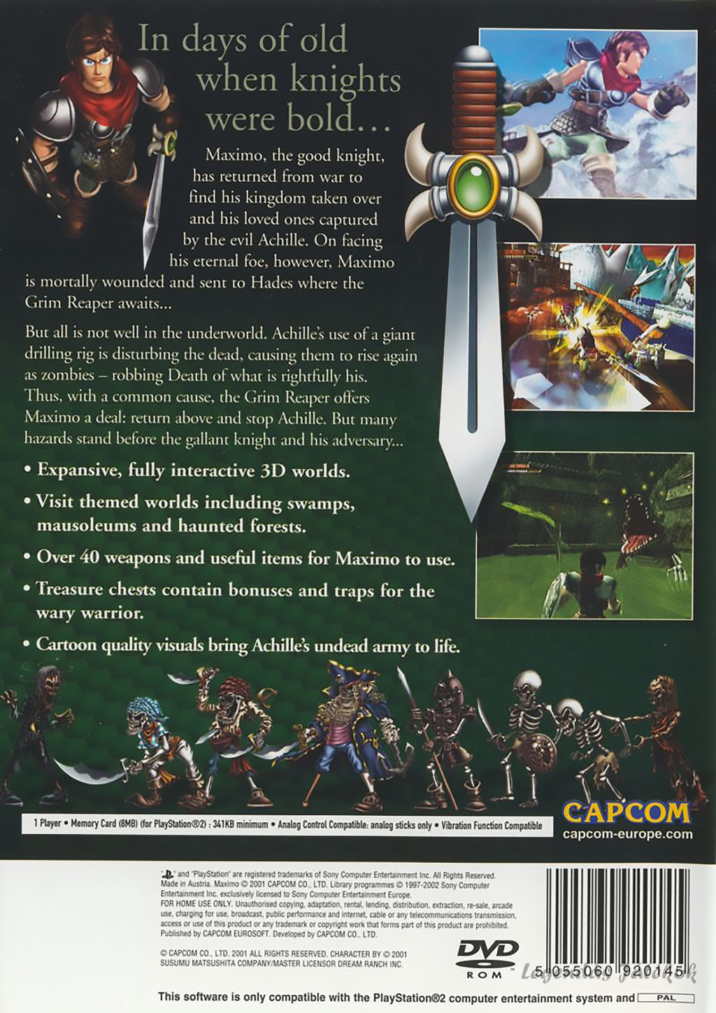 A Maximo: Ghosts to Glory egy 2001. december 27-én megjelent PlayStation 2 videojáték, amelyet a Capcom Digital Studios fejlesztett és a Capcom adott ki világszerte. A játék a klasszikus Ghosts 'n Goblins univerzum modern, 3D-s újraértelmezése, amelyben a japán illusztrátor, Susumu Matsushita karaktertervei kelnek életre egy látványos és akciódús fantasy világban.