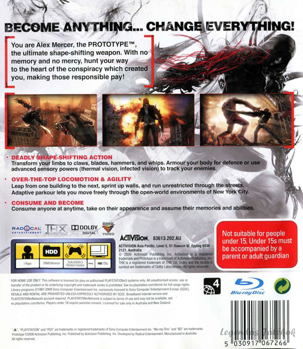 A játékot a Radical Entertainment fejlesztette, és az Activision adta ki 2009-ben, PlayStation 3 mellett PC-re és Xbox 360-ra is. A Prototype a szuperhősös játékok és a zombis túlélőhorror elemeit ötvözi, így különösen ajánlott azoknak, akik szeretik az erőteljes karakterfejlődést, a látványos harcokat és a sötét, posztapokaliptikus történeteket.