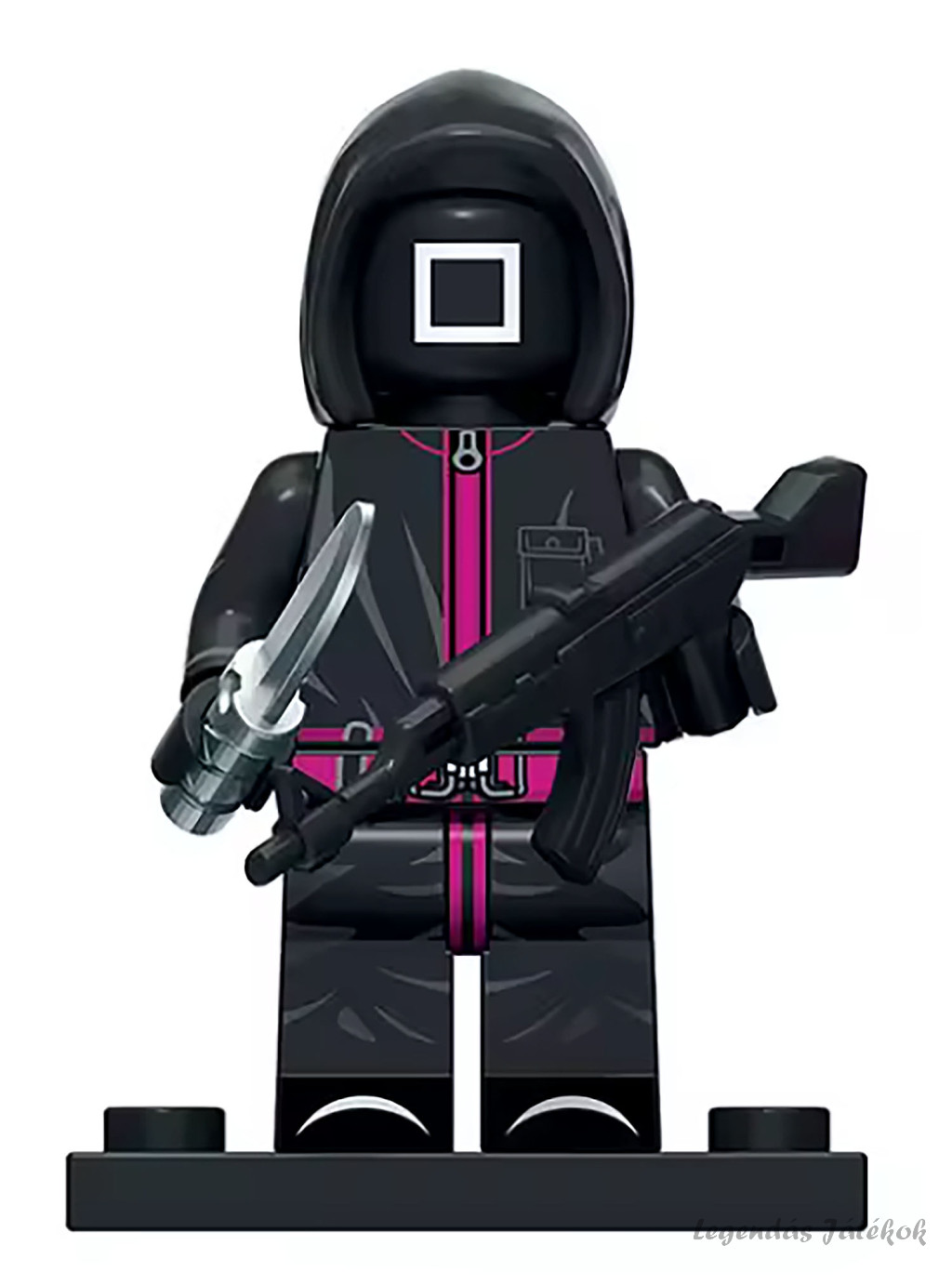 A Squid Game sorozatban a fekete ruhás, négyzet szimbólummal ellátott katonák a hierarchia legfelsőbb szintjét képviselik a maszkos őrök között, akik közvetlenül irányítják és felügyelik a játékok lebonyolítását, valamint parancsokat adnak a körükben alacsonyabb rangú, háromszög és kör jelzésű katonáknak. Ők testesítik meg a rendszer szigorát és a szabályok könyörtelen betartatását, hiszen nem csupán a játékosok fegyelmezéséért felelnek, hanem a belső rend fenntartásáért is, beleértve a lázadások vagy szabályszegések azonnali elfojtását. A négyzet jelzésű őrök kommunikálnak a titokzatos vezetőkkel, így közvetítő szerepet töltenek be a felsőbb hatalom és a végrehajtó katonák között, miközben rideg, érzelemmentes jelenlétükkel fokozzák a sorozat nyomasztó, totalitárius légkörét.
