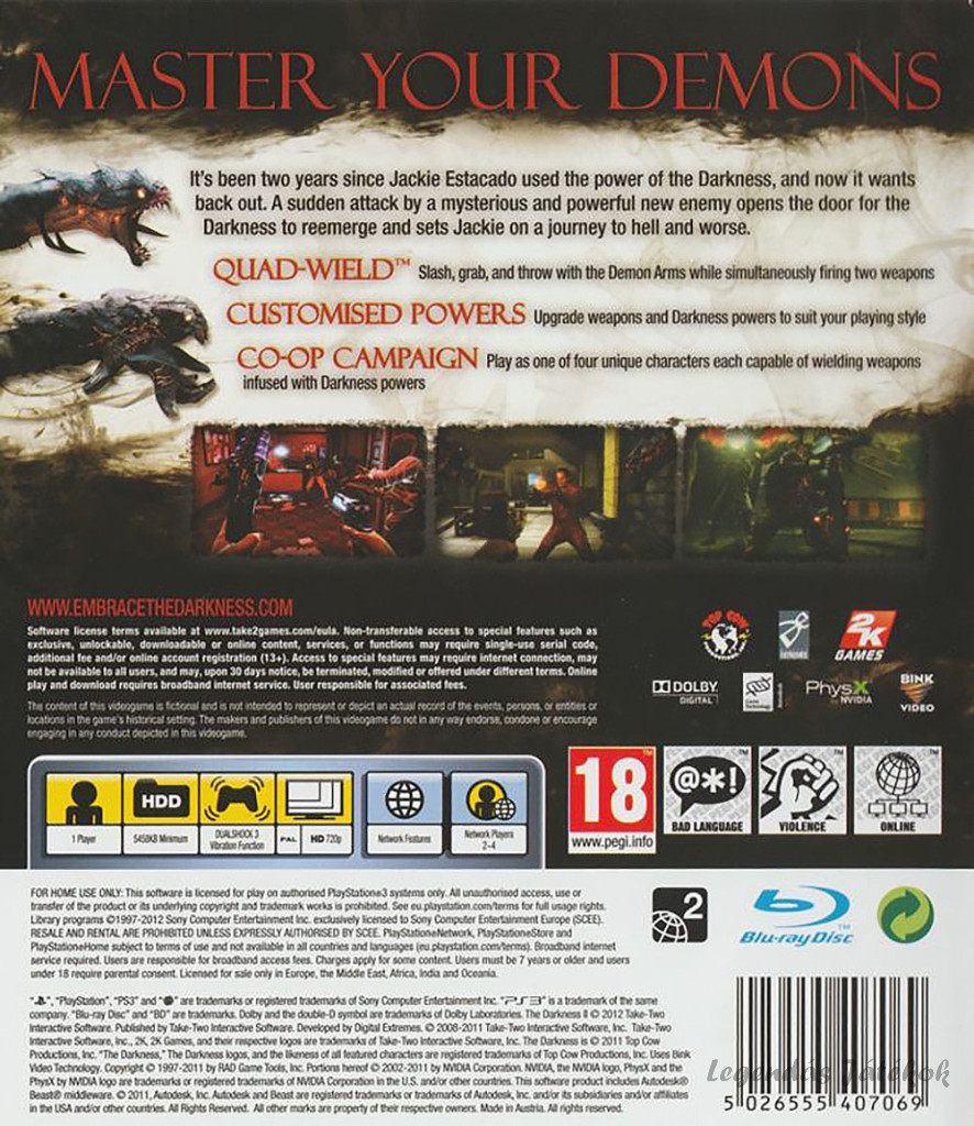 Összességében a The Darkness II egy sötét, intenzív akciójáték, amely sikeresen ötvözi a lövöldözős játékmenetet és a természetfeletti képességeket, miközben egy sötét, drámai történetet mesél el.